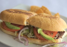 Oven-roasted beef with lettuce, tomatoes, avocado, onions and mayo.